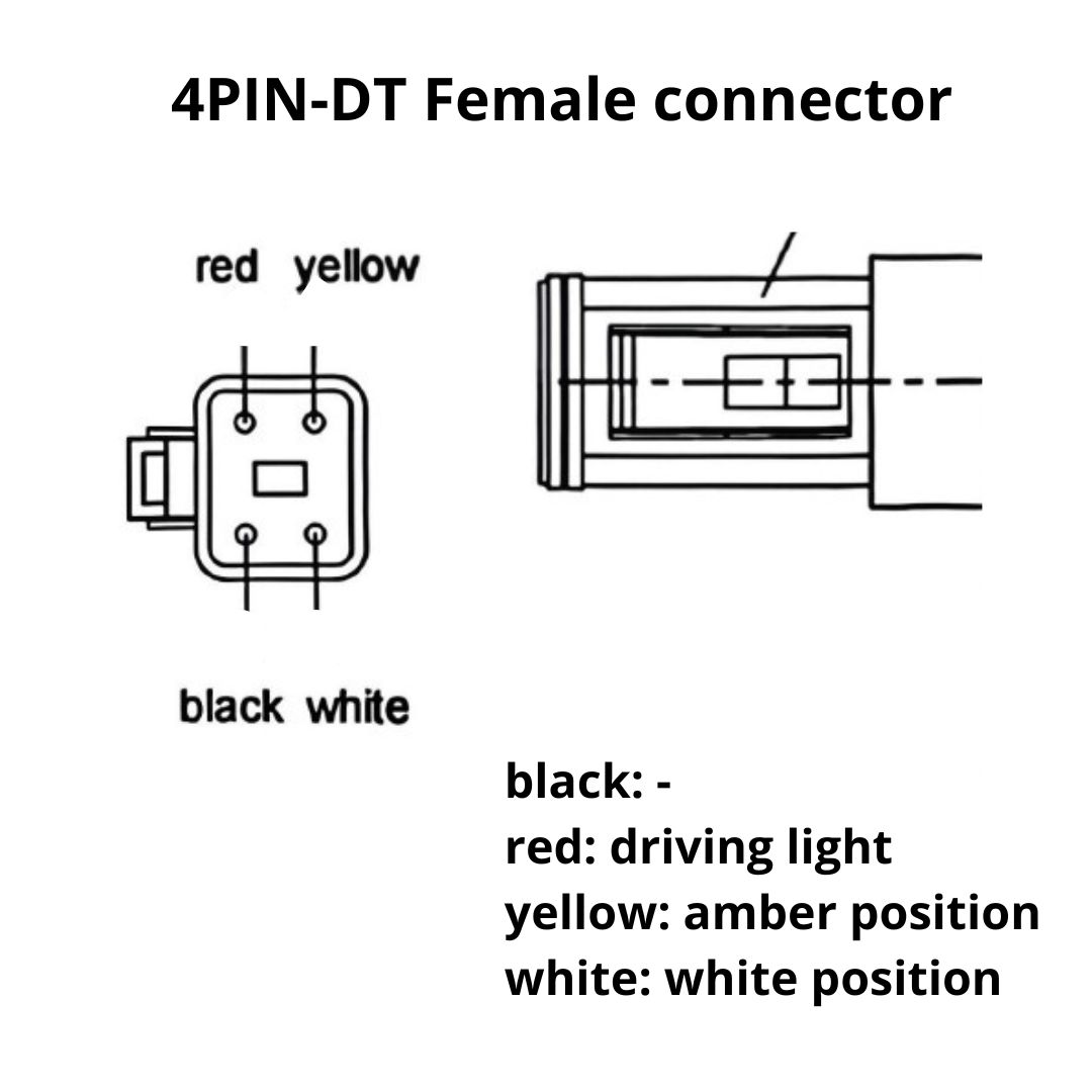 - Ekstralys, fjernlys og LED-barer som krever DT-4 pins